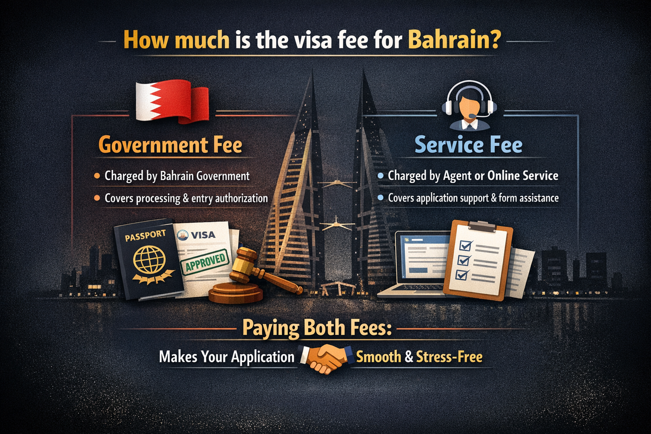 - Government Fee: This is the Government charge set by Bahrain for processing your application. It covers checking your documents and issuing your entry authorization.